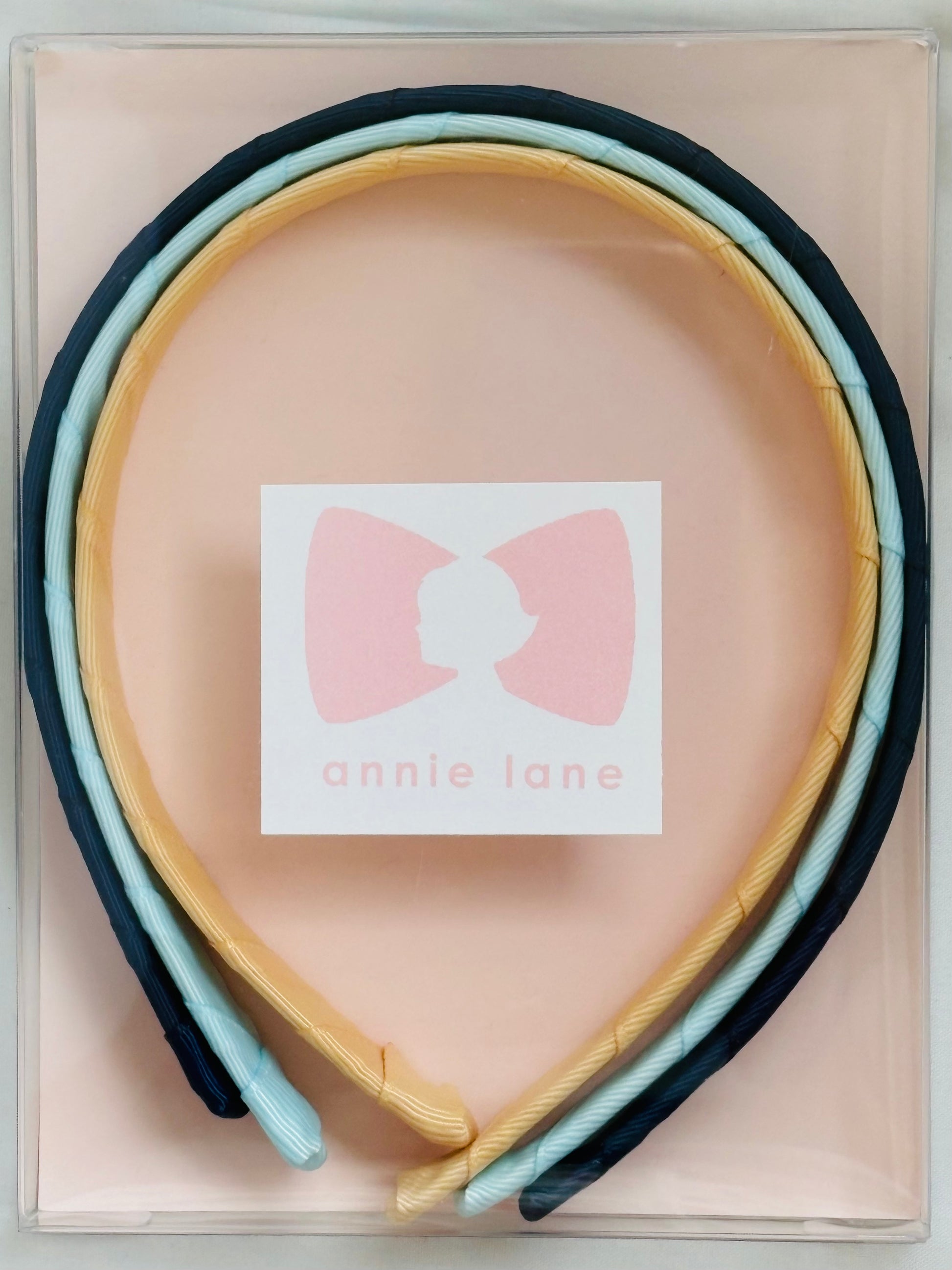 Add a pop of charm to any outfit with this adorable set of three grosgrain headbands. Made with soft, high-quality grosgrain ribbon, these headbands are gentle on heads while staying snug and stylish all day long.