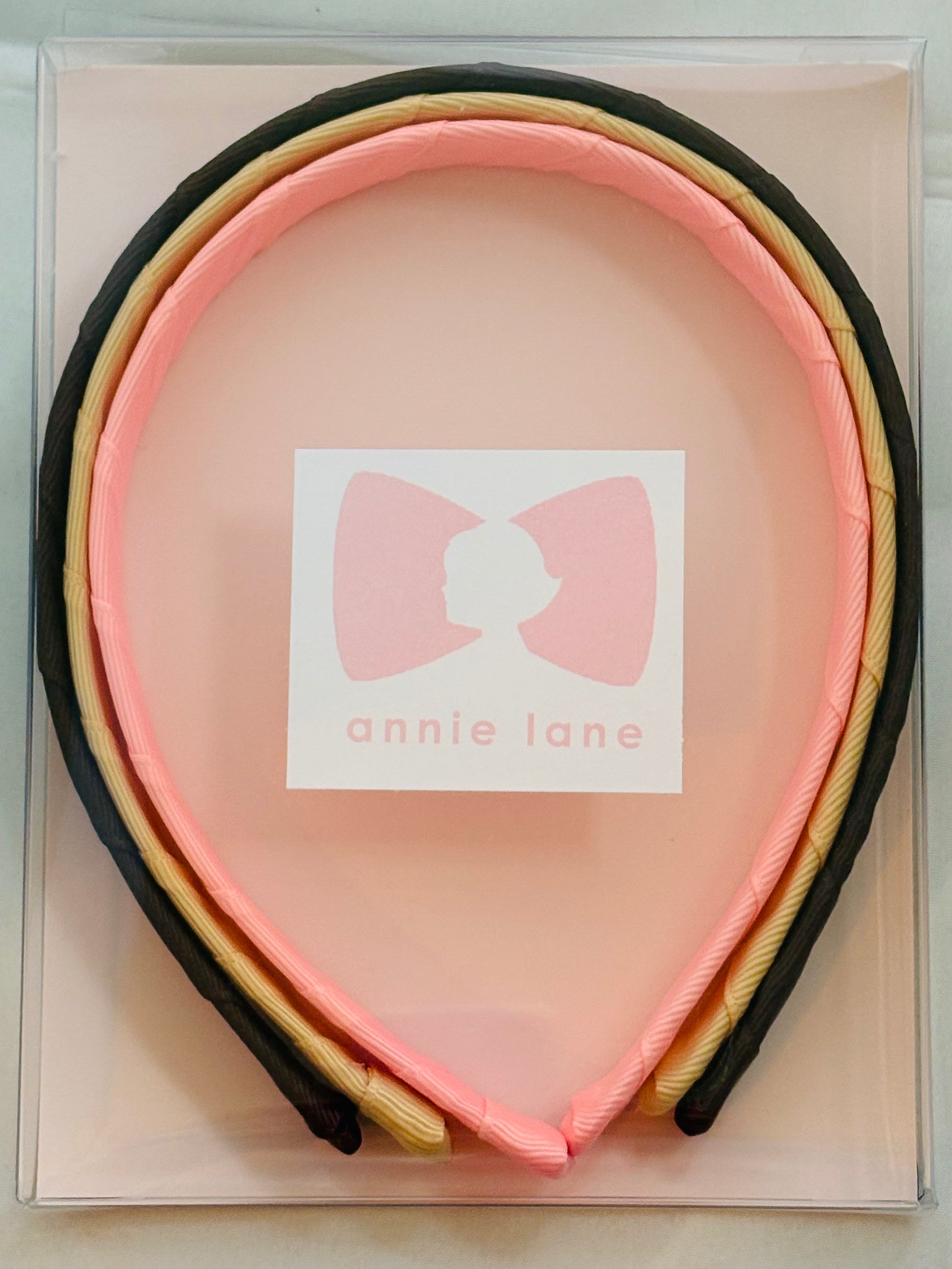 Add a pop of charm to any outfit with this adorable set of three grosgrain headbands. Made with soft, high-quality grosgrain ribbon, these headbands are gentle on heads while staying snug and stylish all day long.